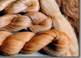 Silk has luster, drape and strength. There are three grades of silk; each is a product of the three different stages of silk processing. The unwound filament makes the finest quality silk, and is referred to as reeled silk. It is satiny smooth and pure white. Remaining silk from the reeling process becomes the raw material for carded or combed, spun silk yarn. The short fibres left behind after the carding or combing process are used to make noil yarn, a richly textured nubbly silk.